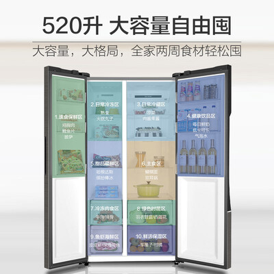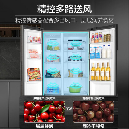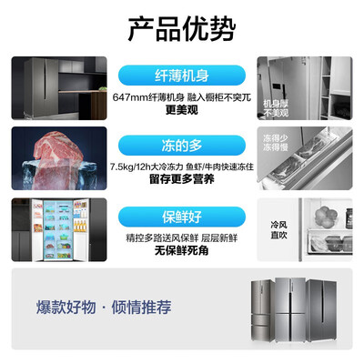 安装了深空灰拉丝面板,纹理细腻,耐磨防刮,清洁起来也比较方便;具备AFR精控多路送风系统,制冷更加均匀。