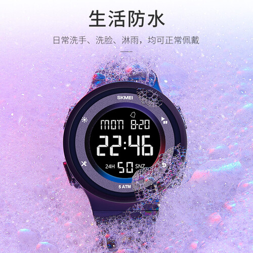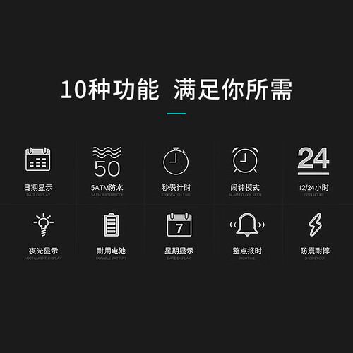 该款手表采用硅胶表带设计,佩戴更加柔软舒适,经久耐用;不锈钢底盖设计,可50米防水,雨天出行也自在安心。