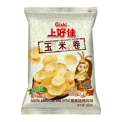 精选玉米,优质土豆和上等大米的碰撞,擦出了南美烧烤的口味。配方不含反式脂肪成分,食用美味轻负担。