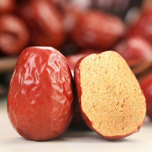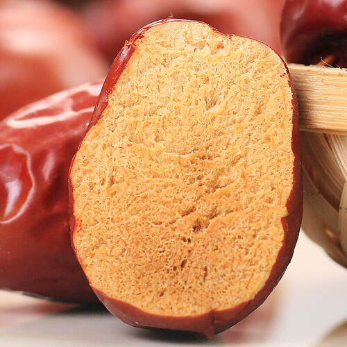 橙黄色的枣肉,细腻紧实,吃起来香甜可口。闻起来浓香扑鼻,红枣的营养价值也很丰富,滋补养颜。