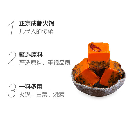 地道的成都风味火锅底料,让您足不出户也能吃到正宗的好味道。独立小块的真空包装,可按照口味添加,食用方便又卫生。