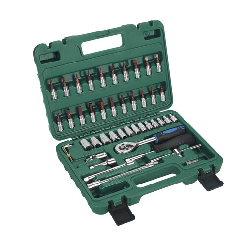 46件套专业维修套组,批头采用S2钢材锻造,硬度更高防锈能力强大,适用于多种汽修工作,助力工作更顺手。