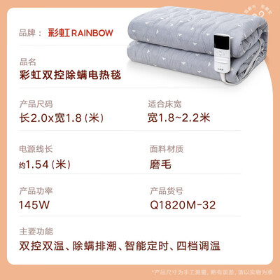 采用全包裹设计,让毯子更好的贴合床垫,睡觉时随意翻滚也不容易移位。双温双控设计,双人一起睡也能互不干扰。