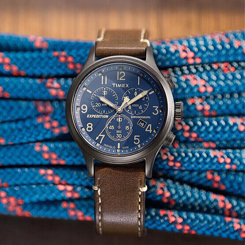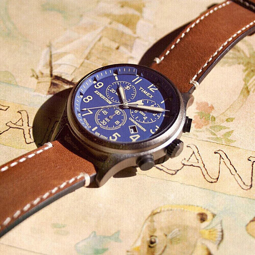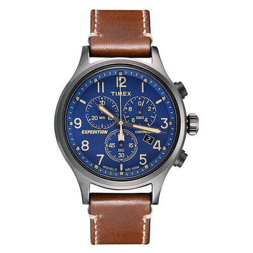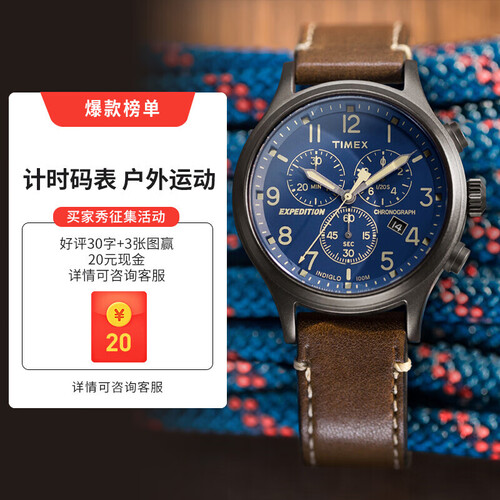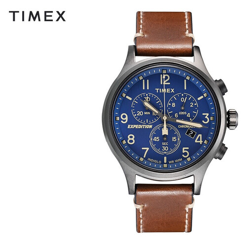 特别加入全盘夜光元素,轻按即开启夜光,让你在漆黑之中清晰读时。棕色皮带配以蓝色表盘,从容彰显男士儒雅气质。