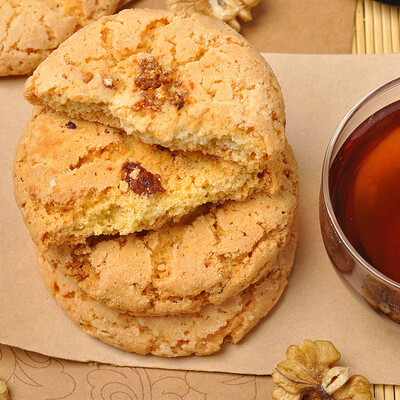 这款核桃酥是盒装的,它比较厚实,色泽金黄,看起来很诱人,吃起来口口脆香浓郁,蛋香味道比较厚重,美味无穷。