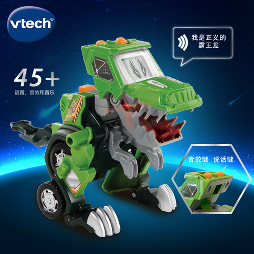 炫酷逼真的造型,可变形的设计,趣味十足。背部设置特别操作按键,可以张嘴怒吼发出声音,互动更逼真。