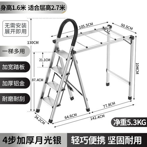 含有六根晾晒杆,有良好的稳重性,满足日常晾晒需求。采用优质的航空铝合金材质,有良好的韧性,更加耐用。