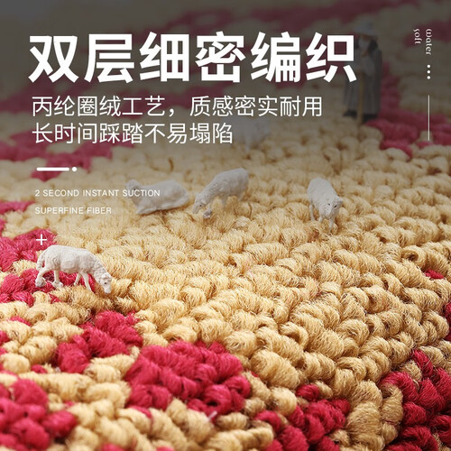 采用丙纶圈绒工艺编织而成的地垫,质感厚实紧密,长时间踩踏可保持原本挺立模样,不容易变形甚至塌陷。