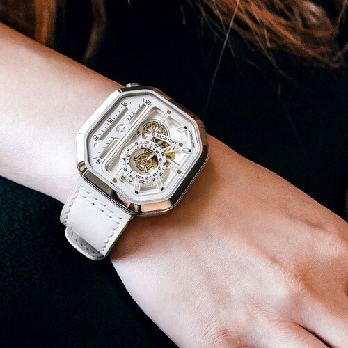 镂空方形表盘,展现沉稳格调,给你带来来自瑞士的机械魅力。个性浮雕底盖,品质更加出众。