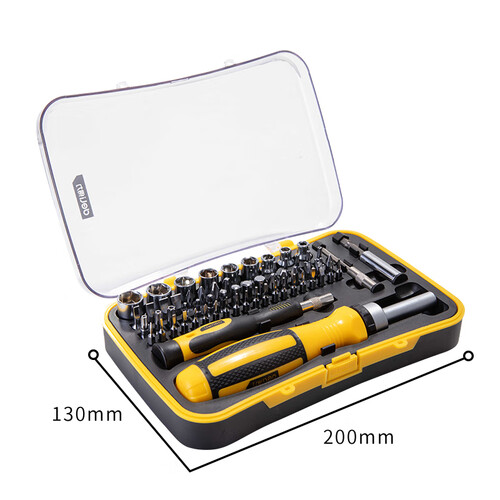 65件套螺丝批,一套工具即可应付日常所需,家居维修没烦恼。配置3挡棘轮手柄,随意拼接,适用于更复杂的环境。