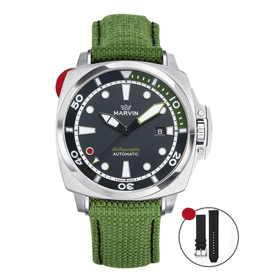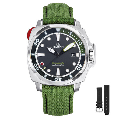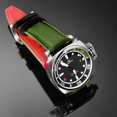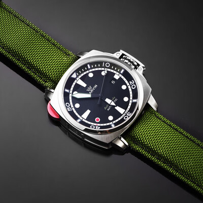 抗压防水性能佳,防水强度可达到200米,足以抵御户外恶劣环境。绿色尼龙材质表带,增加青春活力气息。