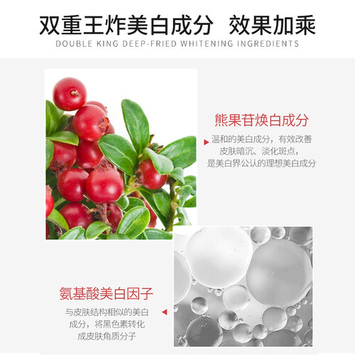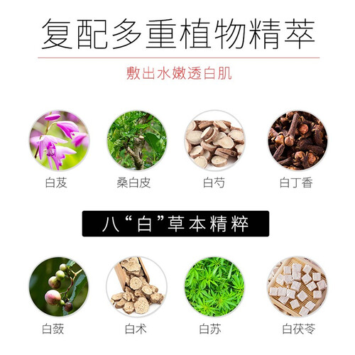 蕴含熊果甘焕白成分,减少色素沉淀,令肌肤越发嫩白光亮。内含白芨植物精华,给肌肤带来充足水润滋养,恢复原来的白嫩状态。