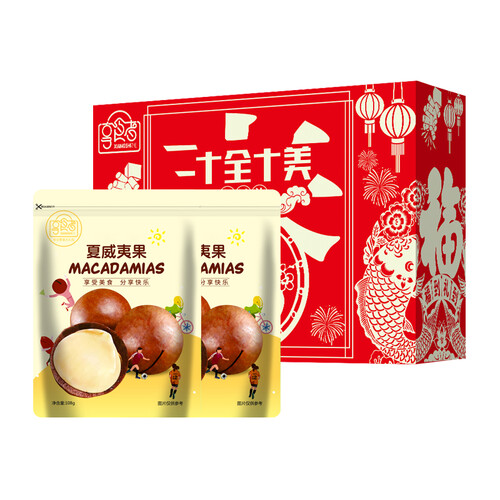 11种坚果炒货搭配,分量足,多种组合搭配更能凸显美味。夏威夷果颗粒饱满,奶香十足,核桃饱满圆润。