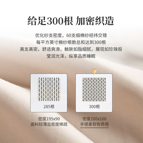 采用贡缎工艺织造而成,色泽温润,质感强烈;再结合简约纯净的配色,还可为您的卧室注入别样的温馨感。