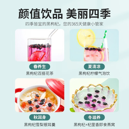 甄选青海高质量黑枸杞,营养精华充分,为身体健康保驾护航。拒绝使用硫磺、染色与添加剂,食用安全更可靠。