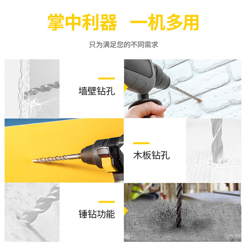 机身轻便小巧单手持握作用轻松省力,深度尺预调打孔的深度,避免打孔时打穿墙壁;铜线电机性能稳定澎湃,提高作业效率。