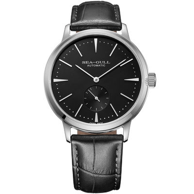 采用牛皮打造的表带,饱满柔韧,不容易产生折痕,黑色的盘面十分简约,纤薄的设计戴在腕间轻盈灵动,不显压抑。