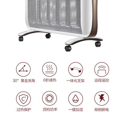 6秒速热,温暖不等待,促使全屋整体升温,肤感温暖更自在。搭配上加湿盒,滋润干燥空气,舒润取暖更舒适。