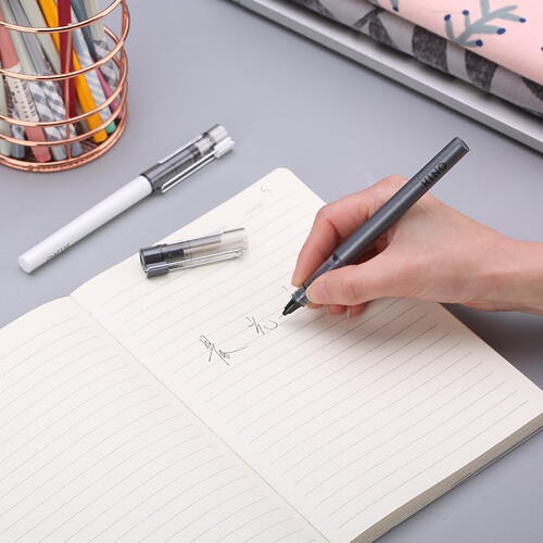 笔芯采用了进口的油墨,去确保出墨更流畅,笔划也会很饱满;速干设计,落笔就能速干,纸面会更干净,不弄脏手。