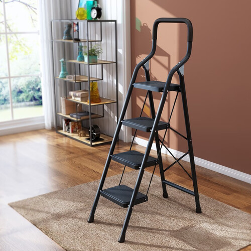 简单大气的黑色折叠梯,加粗加厚圆管支架,承重力强,使用起来方便又安全。