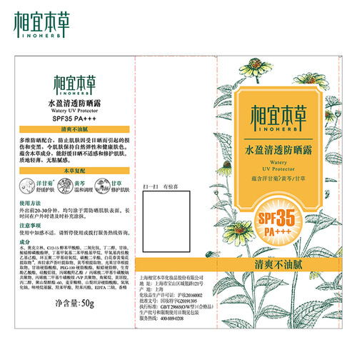 相宜本草 水盈清透 防晒露