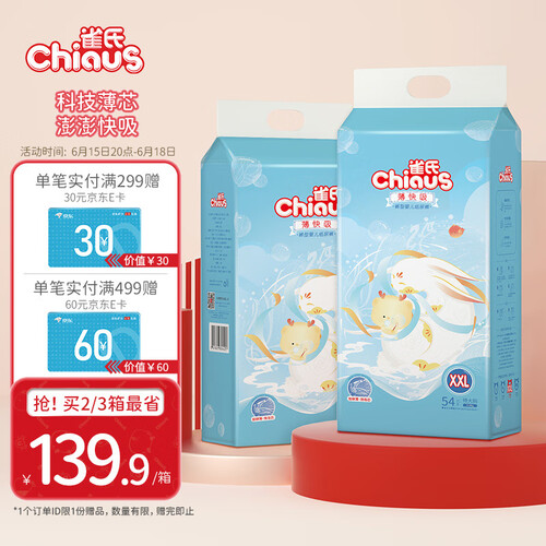 采用纤薄透气的科技芯体,能够牢牢的锁住尿液,妥妥吸收不渗透。拥有进口吸水磨珠成分,能够快速吸收尿液,避免表面潮湿。