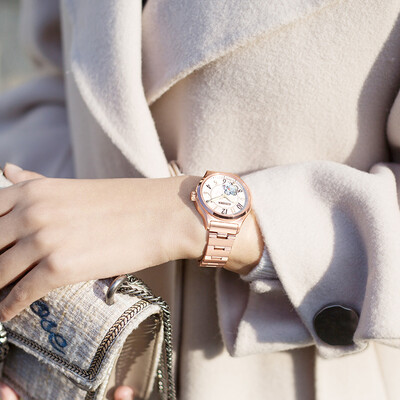 水晶镶嵌在表盘上面,非常的璀璨闪耀,很好的提升手表的时尚感。细腻的做工,让手表更加的结实耐用。镂空视窗,个性别致。