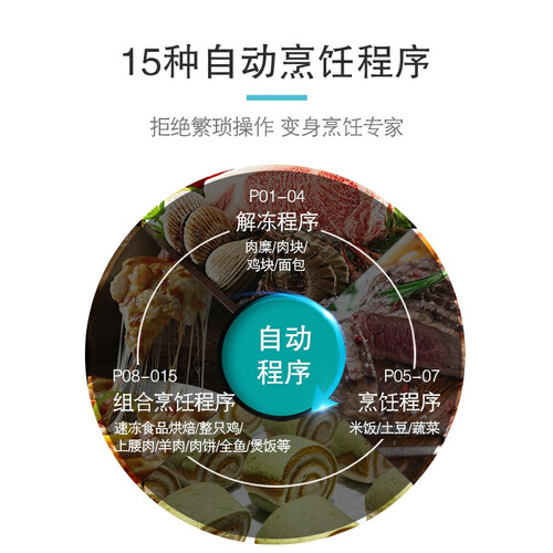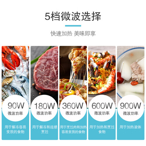 一机多用,满足烘烤、微波加热等多种需求,节省厨房空间。5挡微波功率可调,按需选择。不锈钢内腔,耐刮擦耐腐蚀,清洁方便。