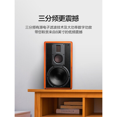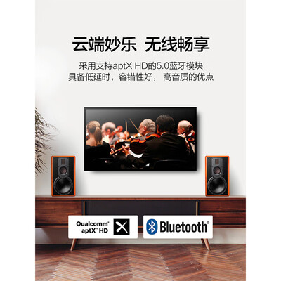 高密度的实木箱体结合精巧的箱体结构,彰显出一种雅致大气的美感。带有丰富的接口,可以连接多种音频设备。