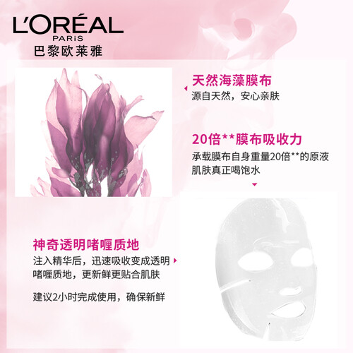 清透葡萄籽精华,具有强大的抗氧化能力,帮助抵御时间流逝;海藻材质膜布,天然不刺激;啫喱质地,温和湿润,滋养效果更优秀。