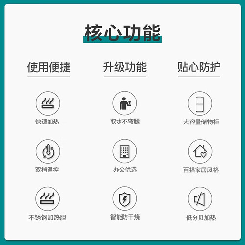 根据人体工学原理设计,93cm科学高度,满足大人小孩不同高度,取水更方便。快速加热功能,上班无需漫长等待。