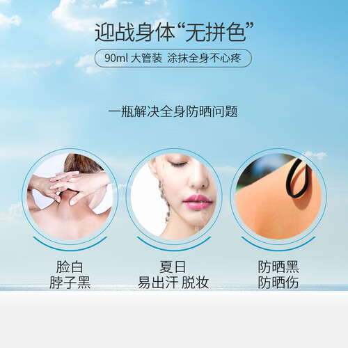 添加丰富的防晒因子,可轻松深入肌肤,高倍防晒能力,轻松抵御紫外线对皮肤的伤害。80分钟有效防水测试,畅玩水上运动。