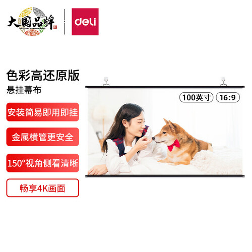 得力白塑悬挂式幕布