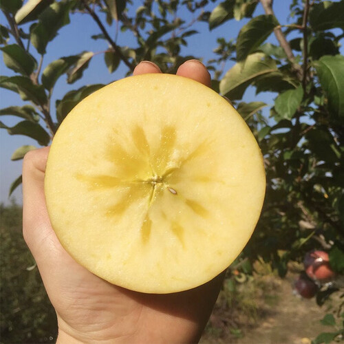 产自新疆阿克苏的冰糖心苹果,果核部分凝聚堆积成琥珀色结晶体,在果肉内出现小颗粒冰糖心。糖分满满,口感脆甜多汁,香甜爽口。