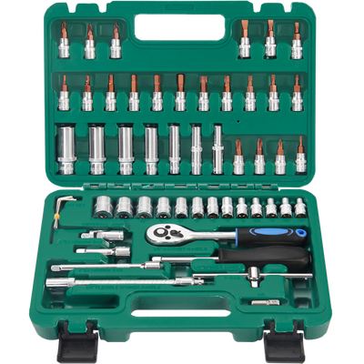 采用铬钒钢材质锻造,坚固耐用;含有万向接头、内六角扳手等53件套组,适用于自行车、电动车、摩托车等汽修工作。