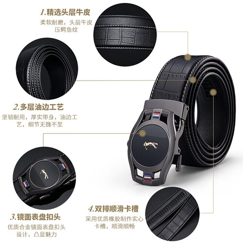 这款皮带选用鳄鱼纹牛皮,纹理清晰,耐折不易损。同时简约的造型,质量轻盈,低调的风格,更好彰显出男士干练的气质。