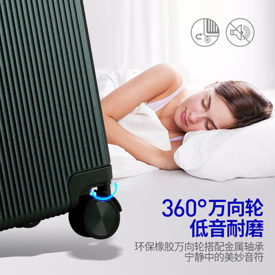 万向轮支持360度转动,橡胶材质更加环保,搭配上金属轴承,带来安静旅程。多段位伸缩拉杆方便调节,满足不同使用习惯。