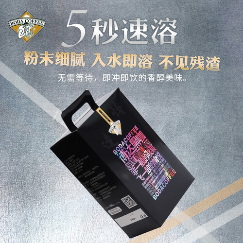 咖啡3秒速溶,不易结块不留残渣,让你快速畅享丝滑美味。采用精粹技术,锁住咖啡豆的精华成分,口感更加出色。