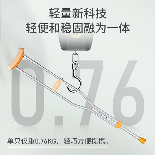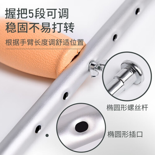 握把采用可调节设计,能根据手臂长度调整位置,使用更舒适。腋托采用人性化设计,边角弧度较为圆滑,无毛刺,不会钩挂衣物。