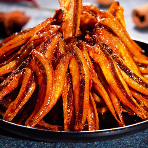 来自深海的鲜美小鱼,多种香辛料卤制而成,肉质鲜嫩肥美,紧实细腻,口感酥软。去头去尾去内脏,可以降低鱼腥味。