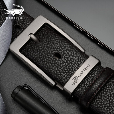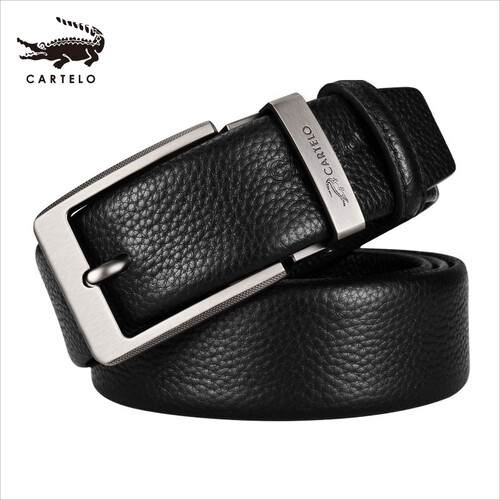 卡帝乐鳄鱼头层牛皮黑色男士皮带