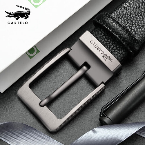 皮尔卡丹百搭头层牛皮男士皮带