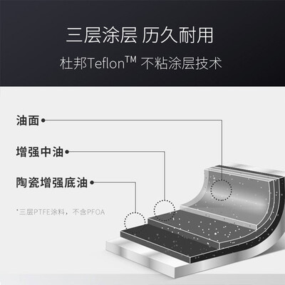 平底设计,煎炒得宜,三层不粘涂层,耐用更持久,强力不粘,铝合金材质,导热更快速。