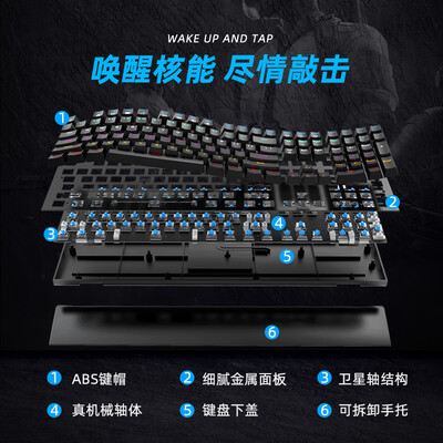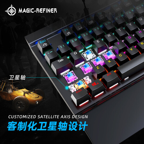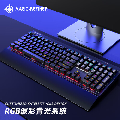 108键全键无冲设计,拒绝键位冲突困扰;14种炫光灯效,支持亮度调节,支持灯光速度调节,一键切换,舒适随心。