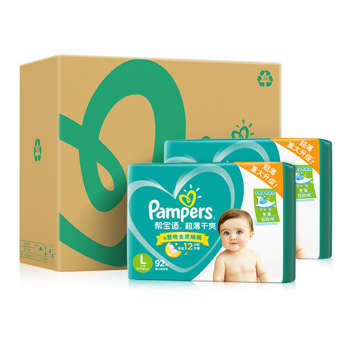 轻薄吸收芯体,拥有三条干爽通道,均匀分散尿液,牢牢锁住,拒绝渗漏问题,一片让宝宝整夜甜梦睡眠。