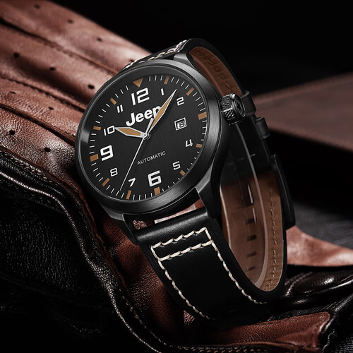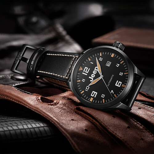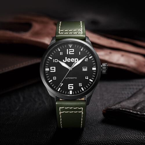 这款腕表的设计灵感来自于jeep的梯形轮眉,继承了jeep的优良产品特性。采用拉砂表盘,外观简约粗犷,满足日常需要。