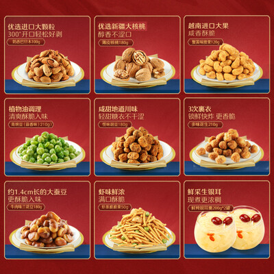 礼盒中有夏威夷果、核桃、腰果等共8种不同的坚果,不仅种类和含量丰富,还含有丰富营养,是日常休闲零食的健康之选。