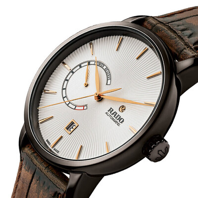 采用高科技陶瓷打造轻盈的外壳,拥有金属质感。表盘添加条形刻度搭配柳叶指针,简洁大方,便于读取时间。