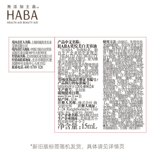 HABA 鲨烷美白面部精华