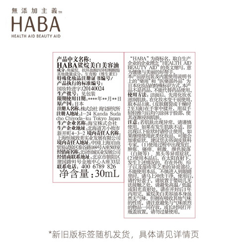 HABA 鲨烷美白精华油